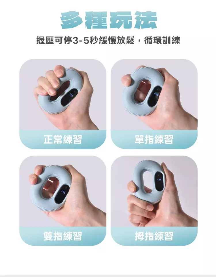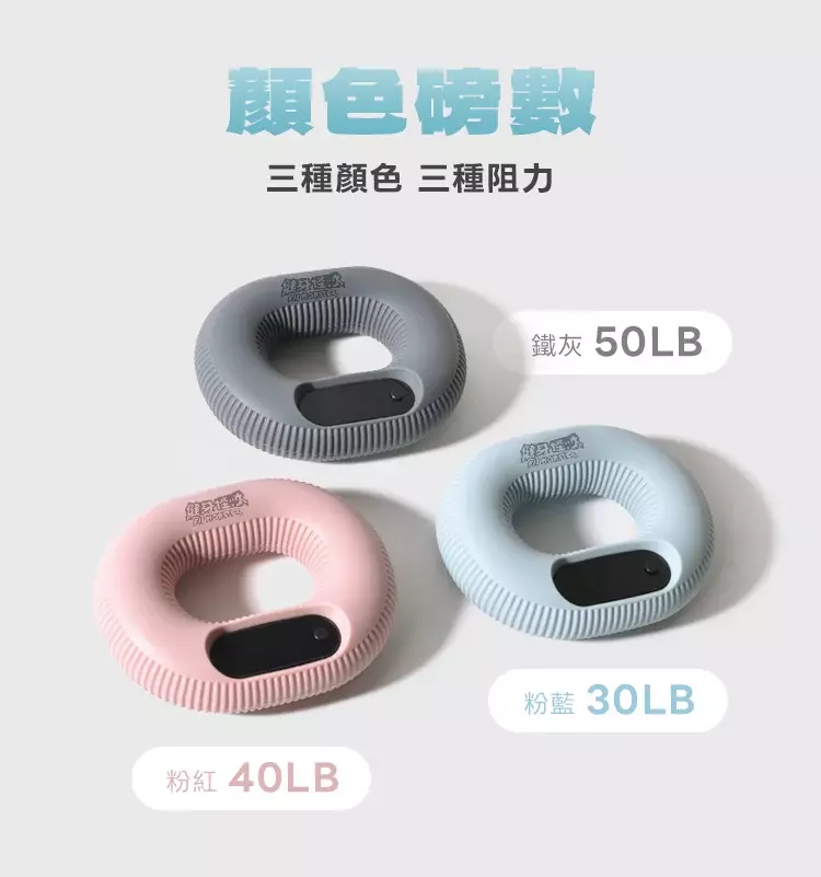 不同阻力對應不同訓練強度,讓新手、日常訓練與進階運動族群都能找到合適的握力訓練選擇。