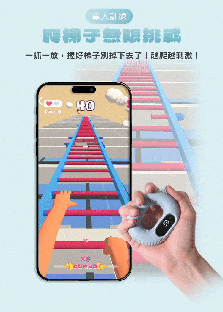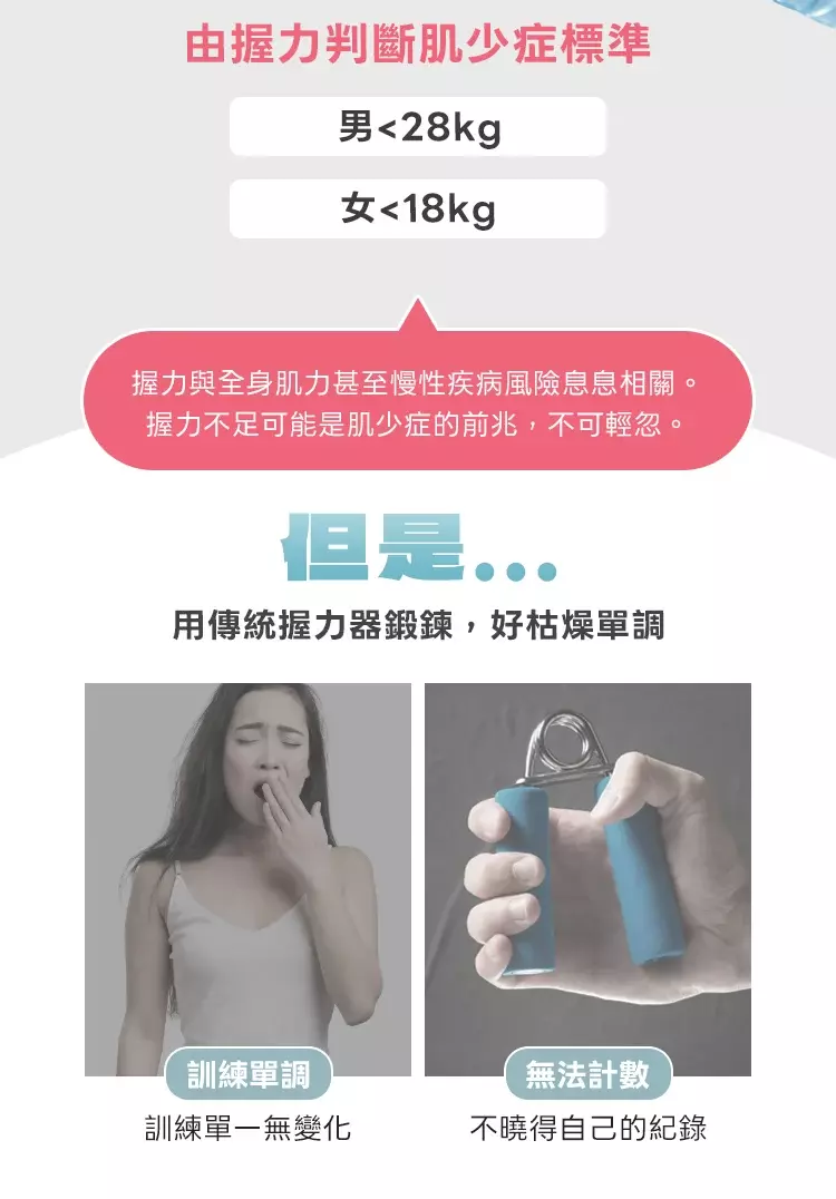 握力次數、訓練時間、歷史紀錄一目了然